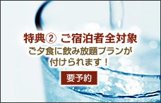 こちらをご希望の方は、予約フォームの備考欄に 「特典2、飲み放題プラン希望」と明記下さい。